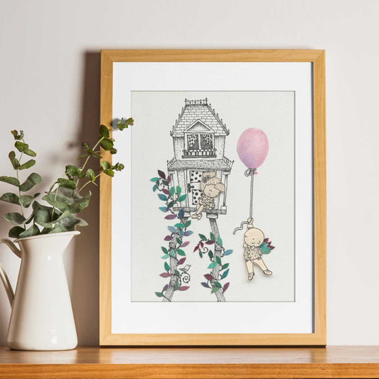 Stenska ilustracija – Balon in drevesna hišica