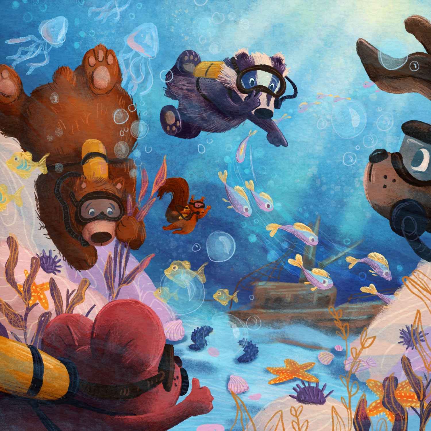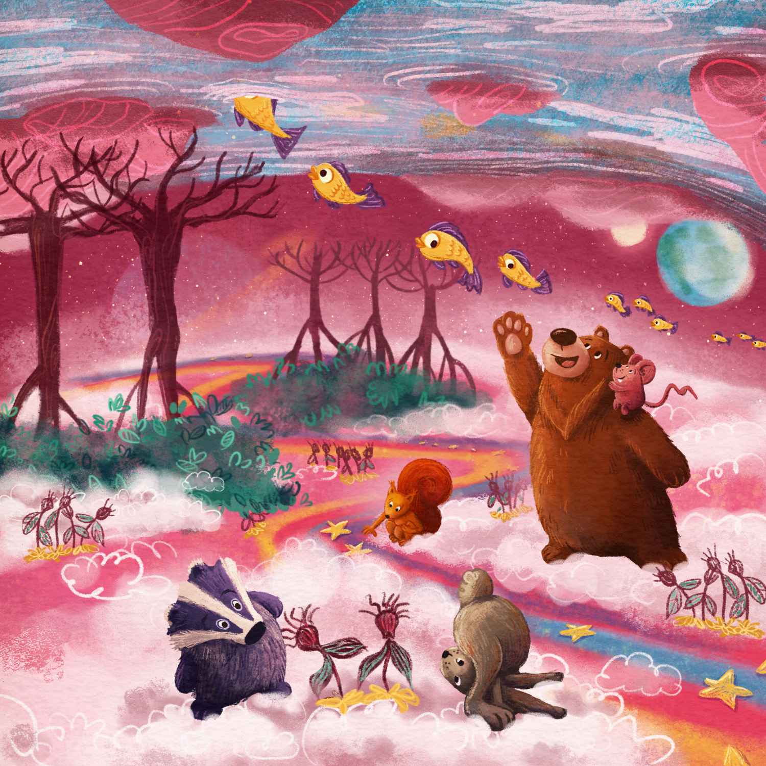Navodilo za nas ilustratorje je, da se nariše po eno krovno ilustracijo na zgodbo, ki naj predstavlja ključno situacijo. Sama pri projektu sodelujem že od samega začetka, od leta 2016 in vedno znova se razveselim novega naročila. Do sedaj sem za Lahkonočnice ilustrirala že 24 zgodbic različnih sodobnih pisateljev.
