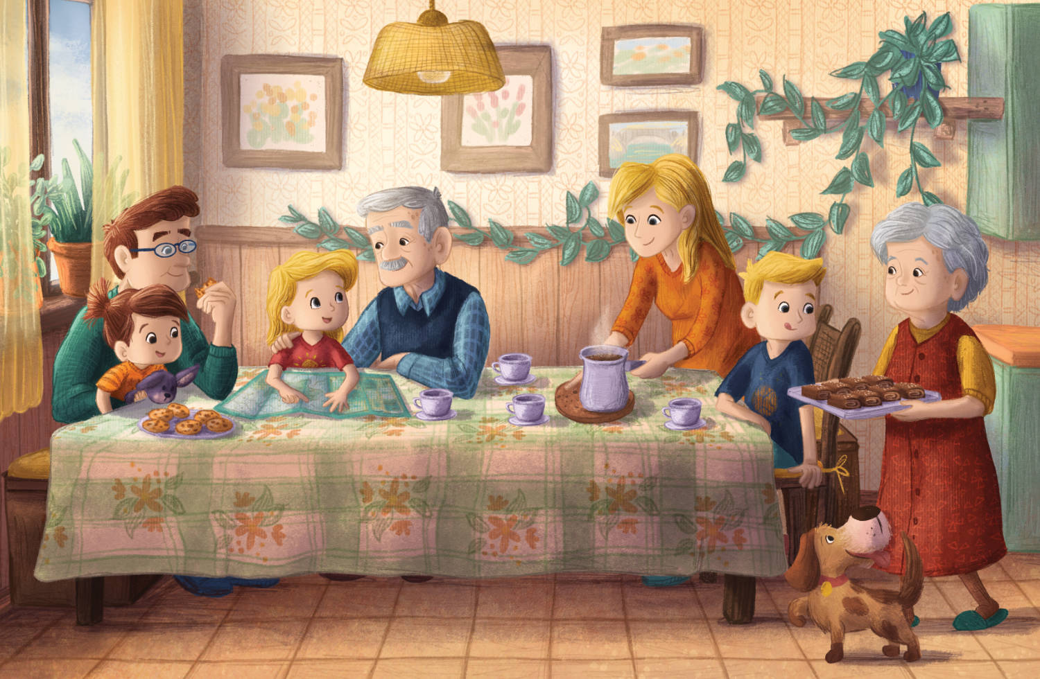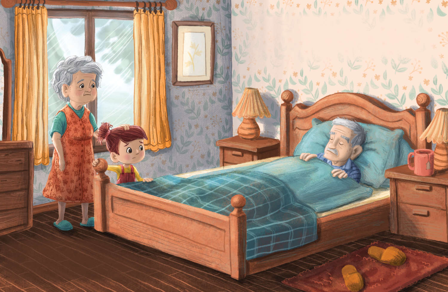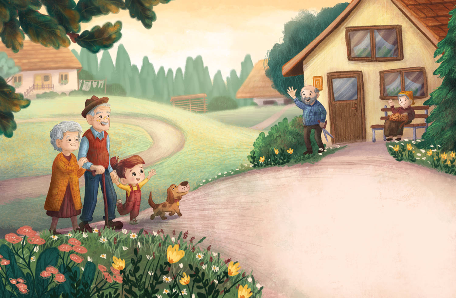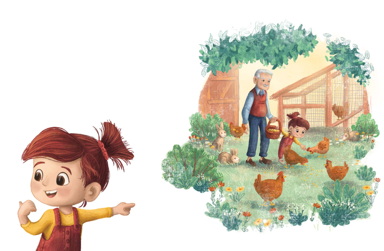 Ilustracije in oblikovanje slikanice Mija pomaga dedku avtorja Zorana Šteinbauerja.